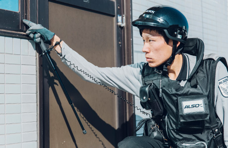 各種警報受信から警備対象施設までは25分以内に到着しなければなりませんが、警備対象物への警備員のアプローチ方法や事案発生時の正確且つ速やかな対応と警察機関への連絡判断などが求められる業務であり、ALSOK福島では各種教育や訓練を受けたトップレベルのガードマンがお客様の安全安心をお守りしています。